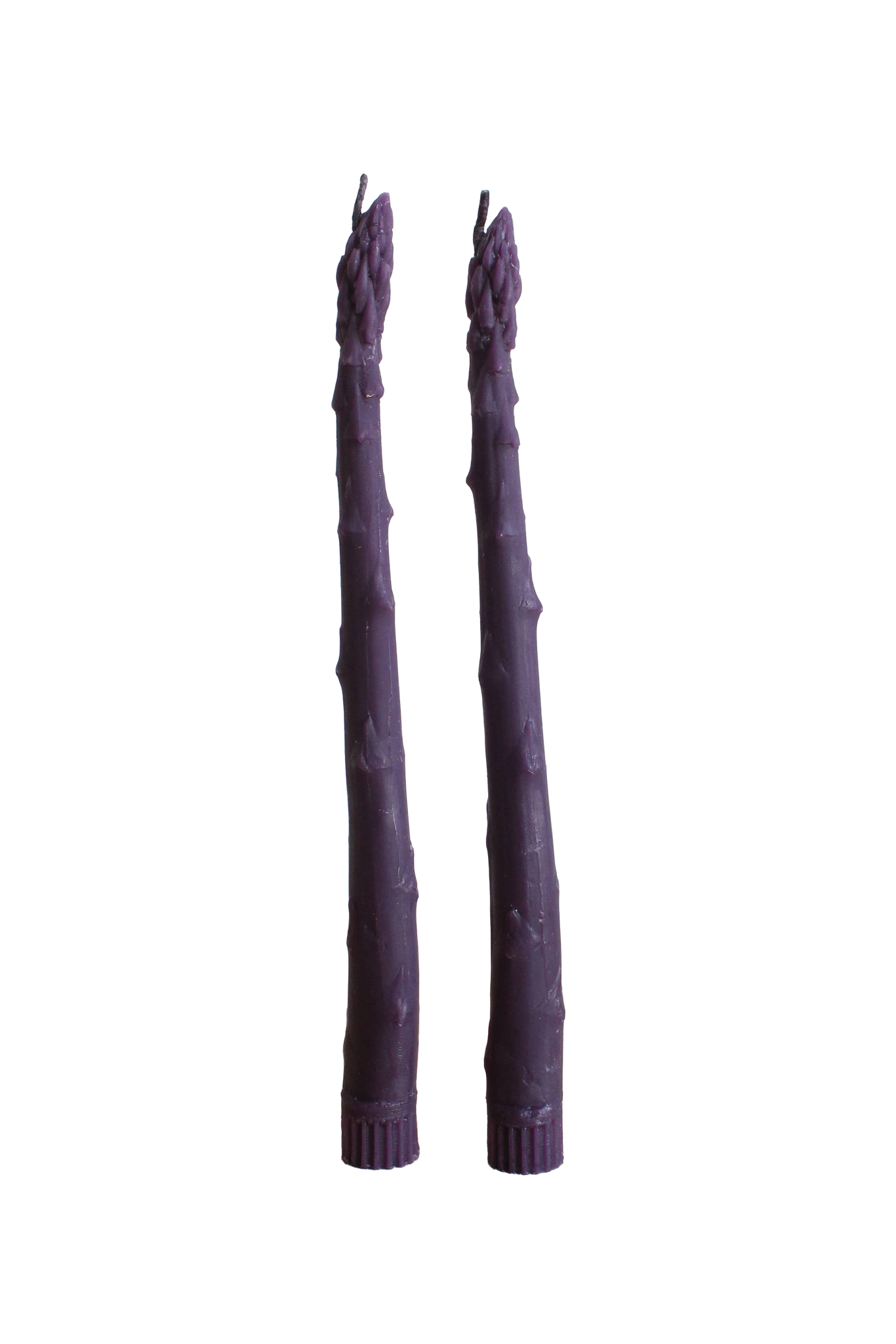 Handcrafted from 100% beeswax and molded from real asparagus stalks, this elegant candle set brings a playful yet refined touch to any shelf.