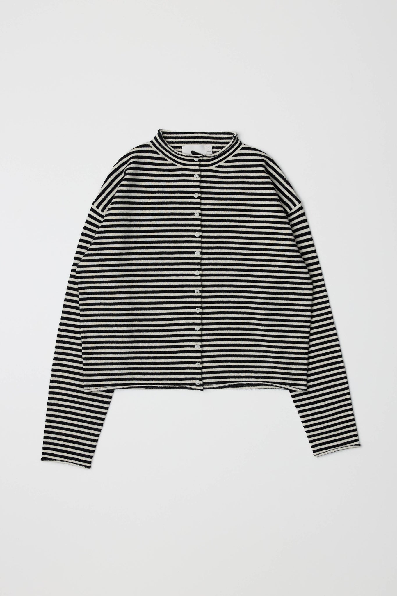The Elisa Cardigan is a striped button-up cardigan designed with a relaxed fit for everyday wear. Finished with rolled edges on the neckline, cuffs, and bottom, it’s crafted from a midweight knit for a comfortable, textured look.
